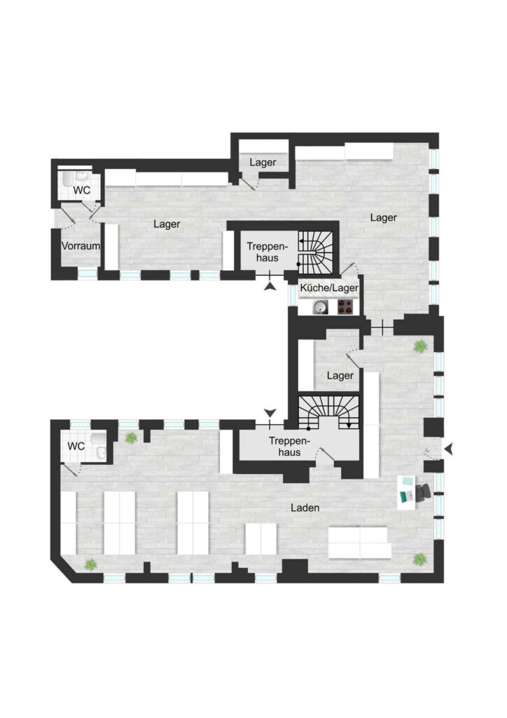 – zwei zusammenhängenden Wohn- und Geschäftshäusern, die über 2 großzügige Ladengeschäfte und 10 Wohneinheiten auf 874 m² teilweise mit Balkonen verfügen. Das Herzstück des Objektes ist das 1850 gebaute denkmalgeschützte spätbarocke „Bürgerhaus“, das 1998 komplett saniert wurde. Im Zuge dessen wurden im gleichen Jahr zwei Wohn-Flügel angebaut.