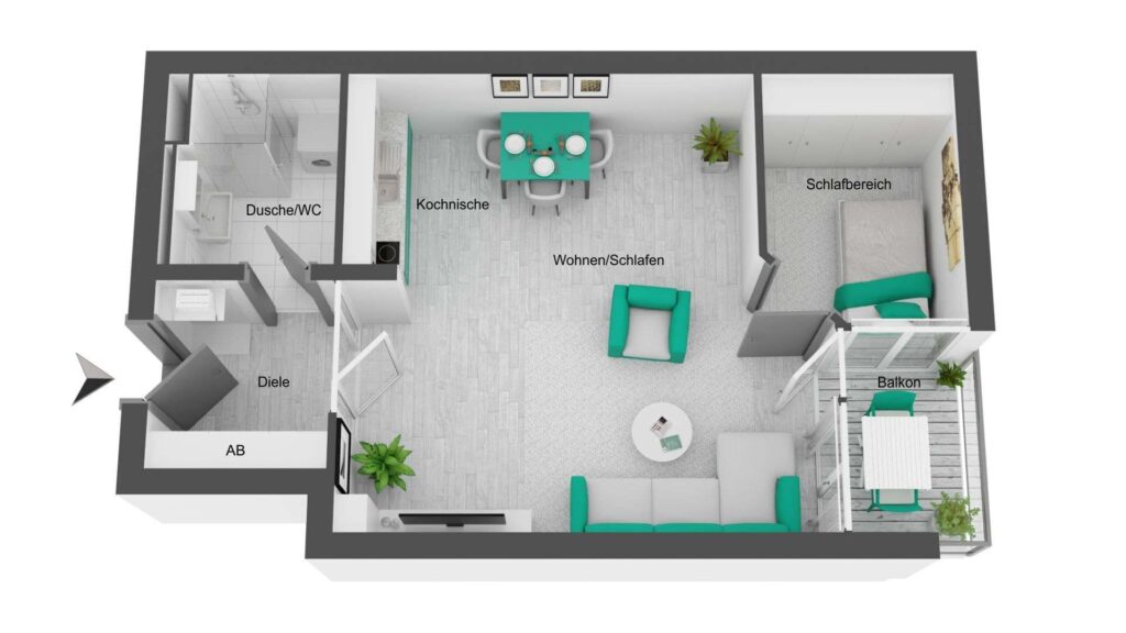 Hinweis: Zum Schutz der Privatsphäre des Mieters, wurden die Gegenstände in der Wohnung digital entfernt.