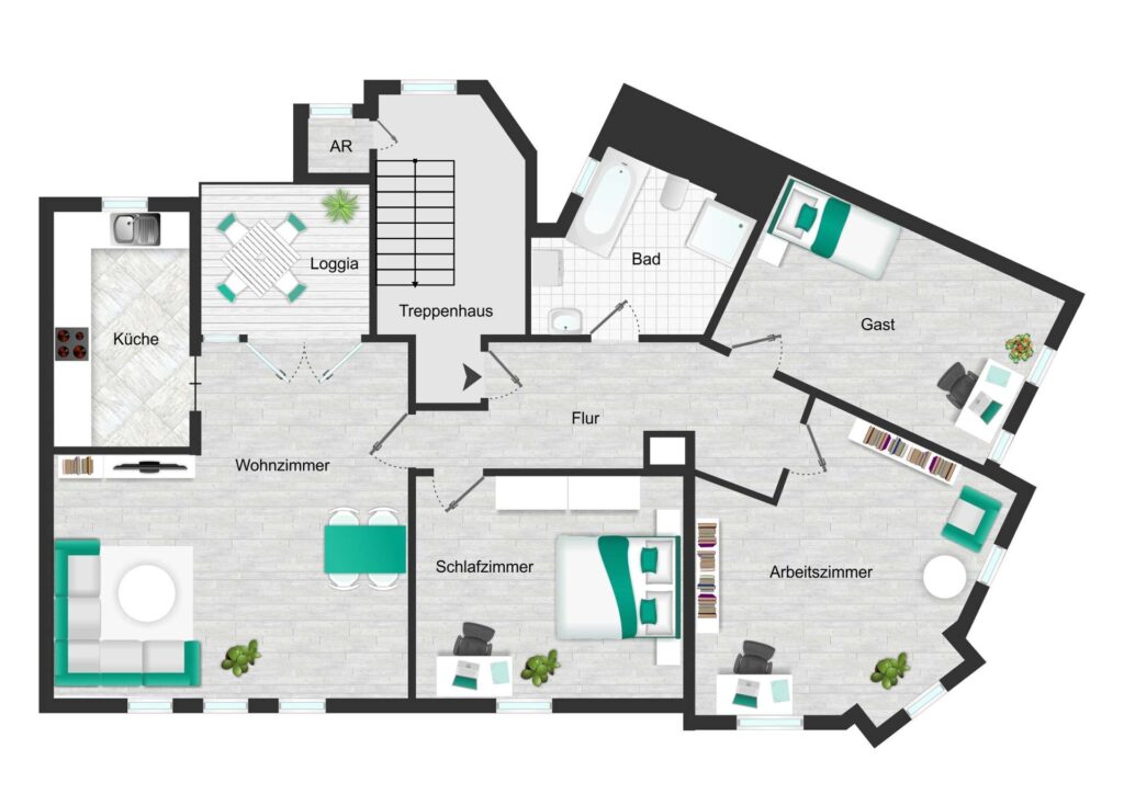 Dachgeschoss: 4-Raum-Wohnung mit gemütlicher Loggia (89 m²)