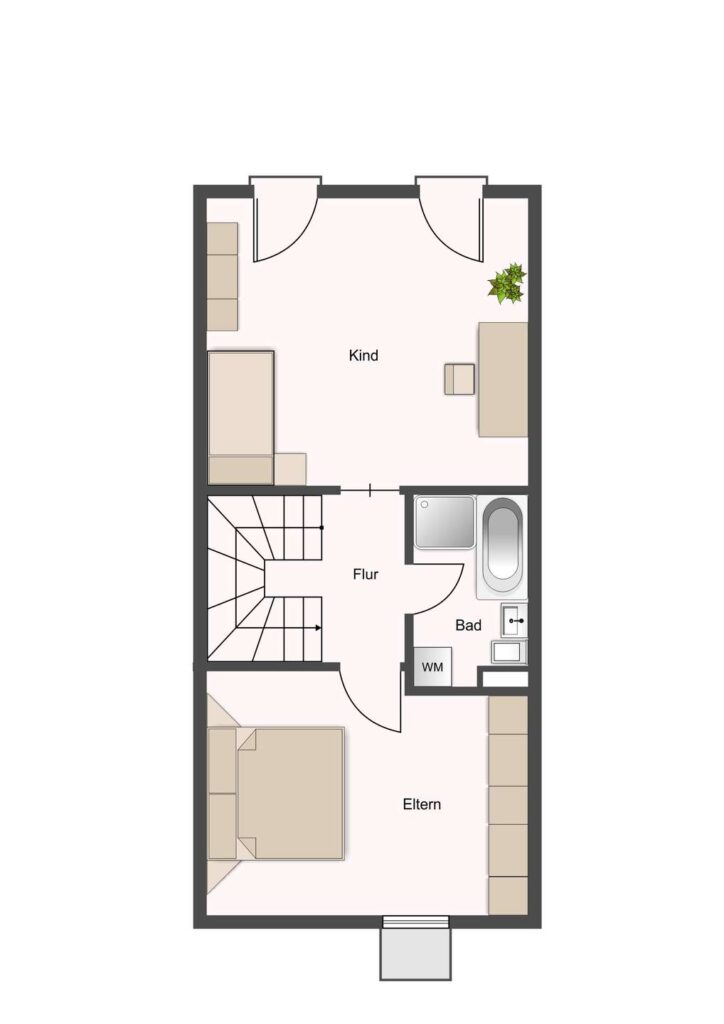 Im Obergeschoss stehen zwei großzügige Schlafzimmer zur Verfügung, die sich bei Bedarf auch teilen lassen. Das Badezimmer ist mit Wanne, Dusche und Waschmaschinenanschluss ausgestattet. Das Dachgeschoss bietet ein großes Studio, ideal als Homeoffice, Kinder- oder Gästezimmer, ergänzt durch einen weiteren Raum mit zusätzlichem Nutzungspotenzial.
