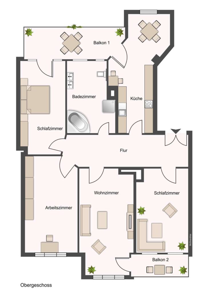 Insgesamt vier große Zimmer eröffnen vielfältige Nutzungsmöglichkeiten – ob Schlaf-, Arbeits-, Gäste- oder Kinderzimmer. Dank großzügiger Fensterfronten sind sämtliche Räume hell, freundlich und schaffen ein angenehmes Wohngefühl.