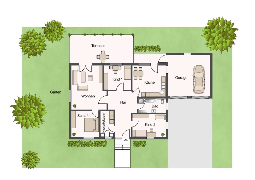 *Großzügige Wohnfläche auf einer Ebene (Bungalow)
