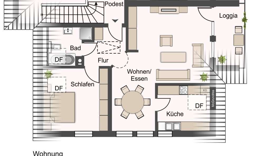 * zusätzlicher Raum im Dachgeschoss nutzbar