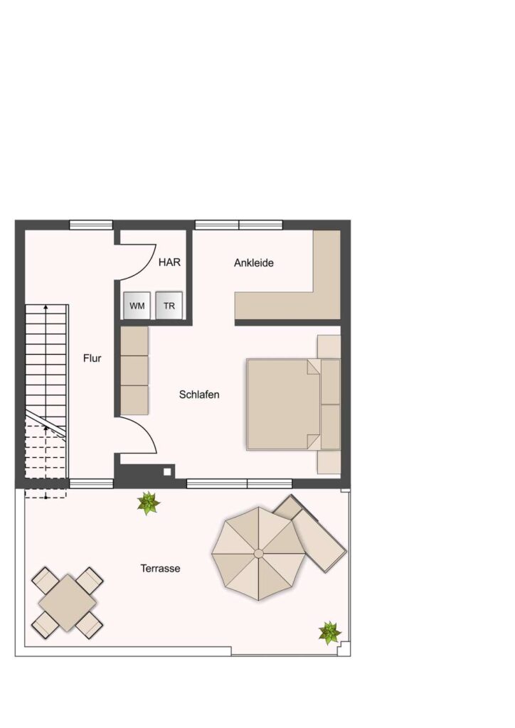 Ein besonderes Highlight befindet sich im Dachgeschoss: Hier liegt das großzügige Masterschlafzimmer mit direktem Zugang zur traumhaften Dachterrasse, von der aus Sie einen seitlichen Blick auf den schönen Zwenkauer See genießen. Ein weiteres Zimmer auf dieser Ebene eignet sich hervorragend als Ankleide oder Homeoffice. Der Hauswirtschaftsraum ergänzt das Angebot.