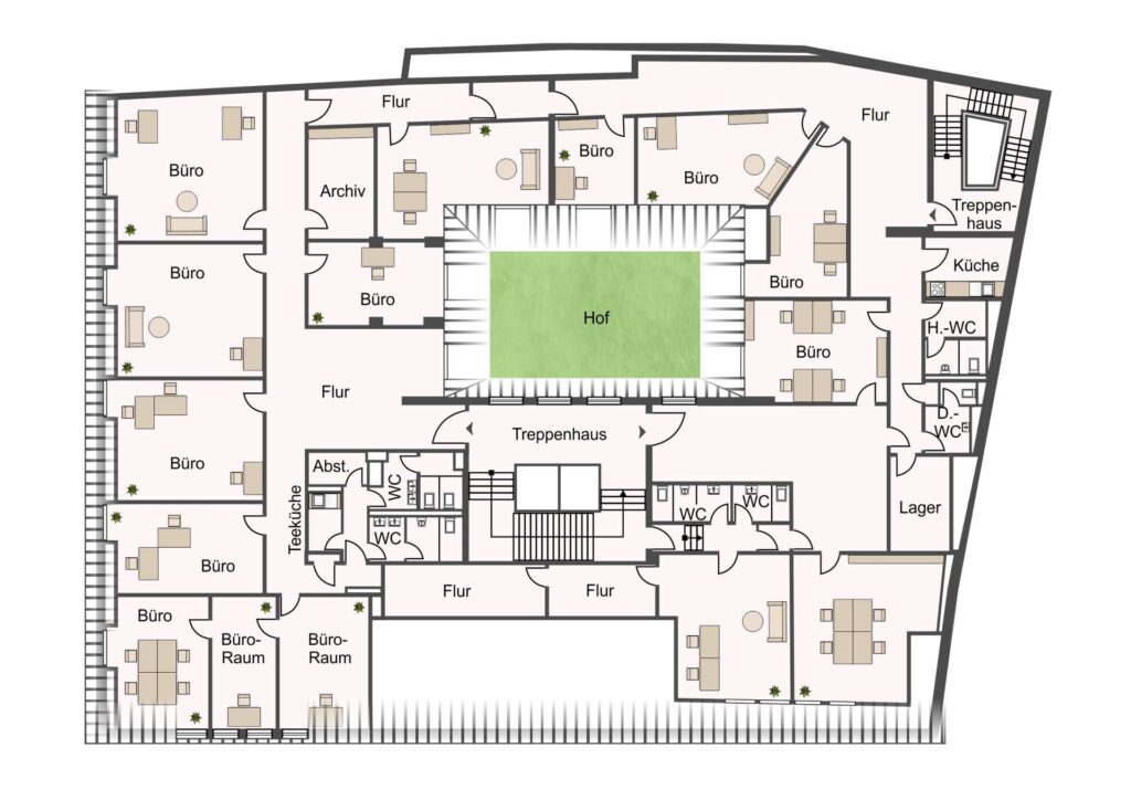 Je nach Bedarf können einzelne Räume oder zusammenhängende Teilflächen angemietet werden. Die genaue Flächenaufteilung sowie Mietkonditionen werden individuell abgestimmt.