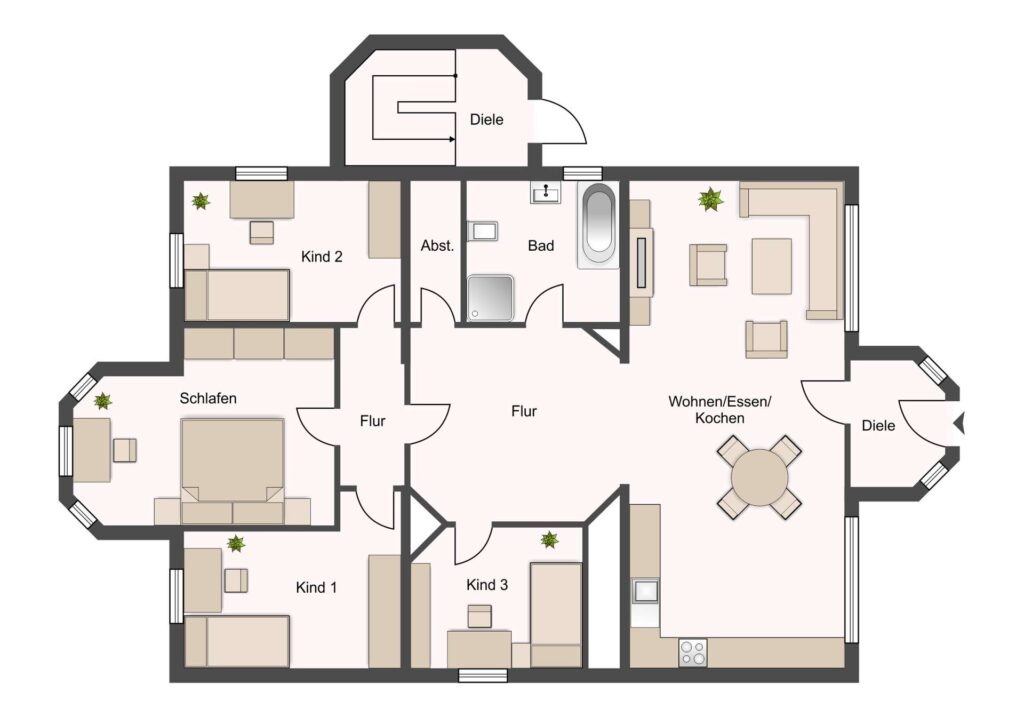 Beim betreten der Wohnung begrüßt Sie der Windfang mit Platz für Ihre Garderobe. Anschließend gelangen Sie in den großzügigen Wohn- und Essbereich.