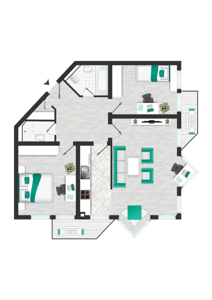 * Die Innenaufnahmen der Wohnung wurden digital entmöbliert.