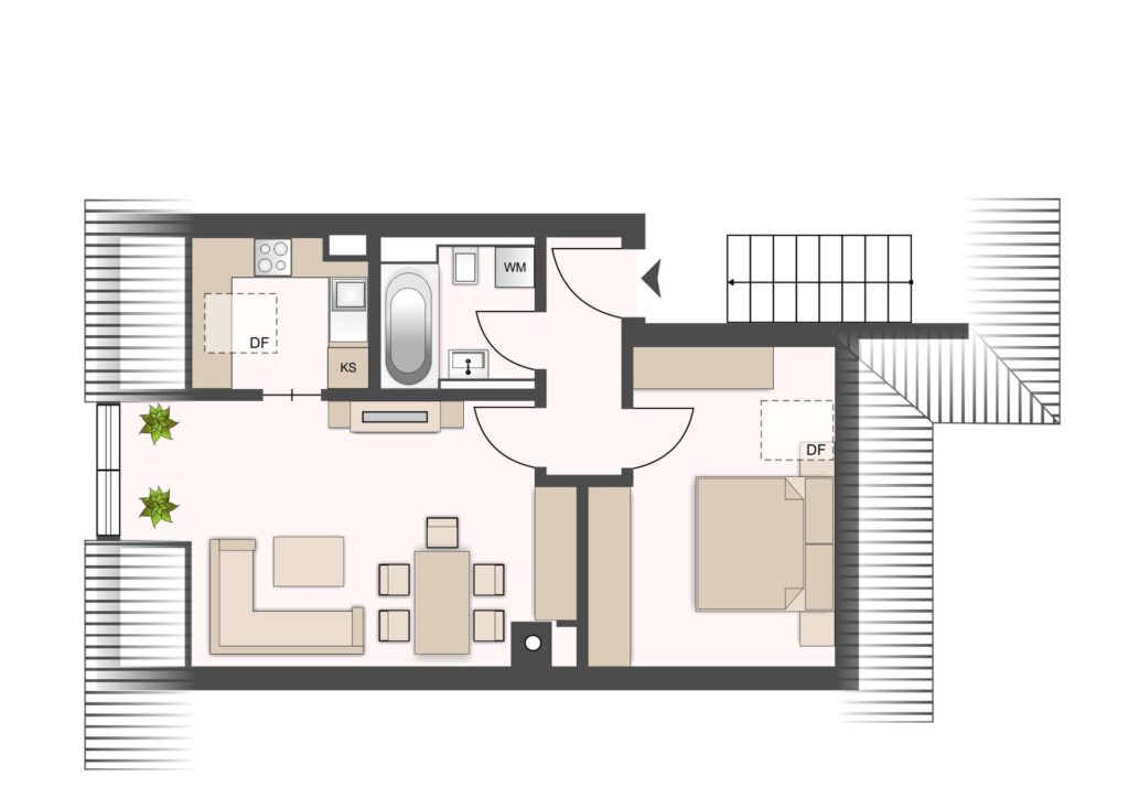 Diese Wohnung befindet sich im Dachgeschoß des ruhig gelegenen Hinterhauses.