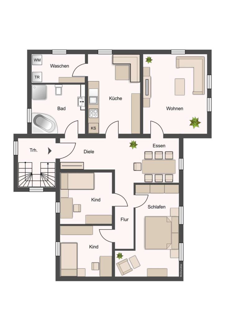 – 1. OG, 140 m², eigener Garten (ca. 300 m²), Kaltmiete 1.372€