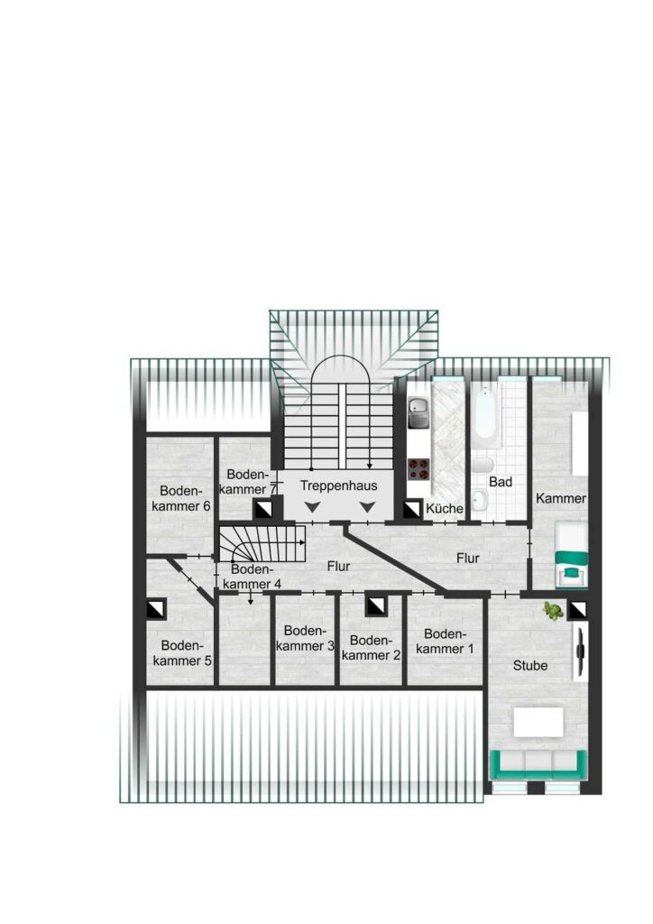 Ein besonderer Pluspunkt ist das Dachgeschoss: Hier ist bereits eine Wohnung ausgebaut, zusätzlich besteht die Möglichkeit, eine weitere Einheit zu schaffen. Dieses Ausbaupotenzial eröffnet Investoren Spielraum für zusätzliche Mieteinnahmen und langfristige Wertsteigerung.