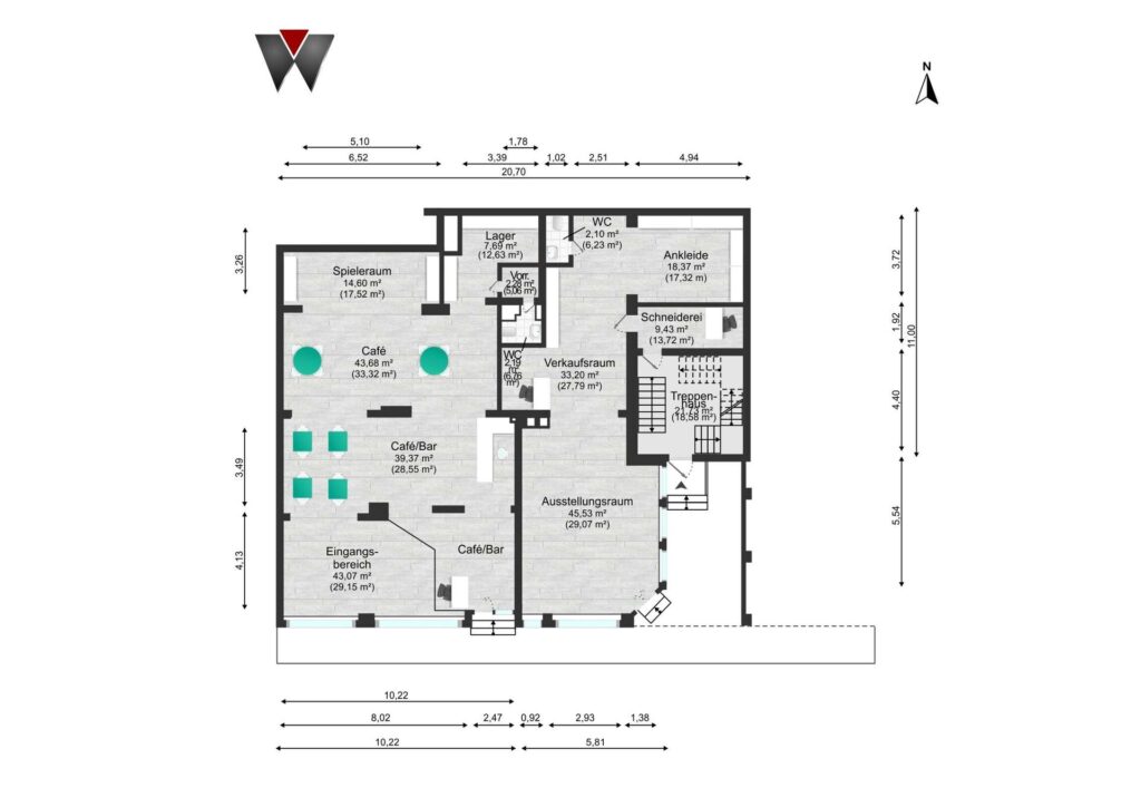 Das Mehrfamilienhaus erstreckt sich über mehrere Etagen und bietet eine Gesamtwohnfläche von ca. 421 m², die Wohnungen mit einer praktischen und funktionalen Raumaufteilung beherbergt. Außerdem verfügt das Haus über zwei großzügige Gewerberäume, die seit 2013 ein Festmoden- und Schneidergeschäft beherbergen und seit dem 01.01.25 eine Postfiliale mit Schreibwaren- und Kioskartikelverkauf.