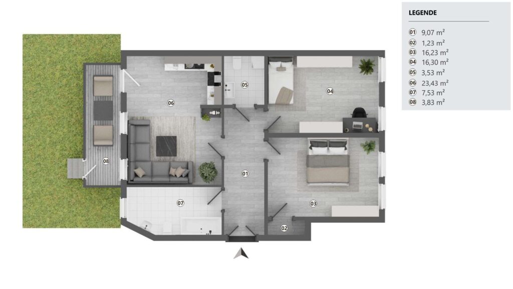 – Wohnfläche: ca. 81 m², 3 Zimmer (2 Schlafzimmer, 1 Wohnküche)