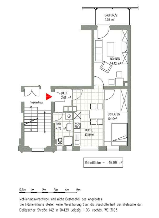 Diese charmante Etagenwohnung zur Miete bietet Ihnen ein komfortables Zuhause in Leipzig. Mit einer Wohnfläche von 46,89 m² verteilt sich das Objekt auf 2 Zimmer, darunter ein geräumiges Schlafzimmer und ein modernes Badezimmer.