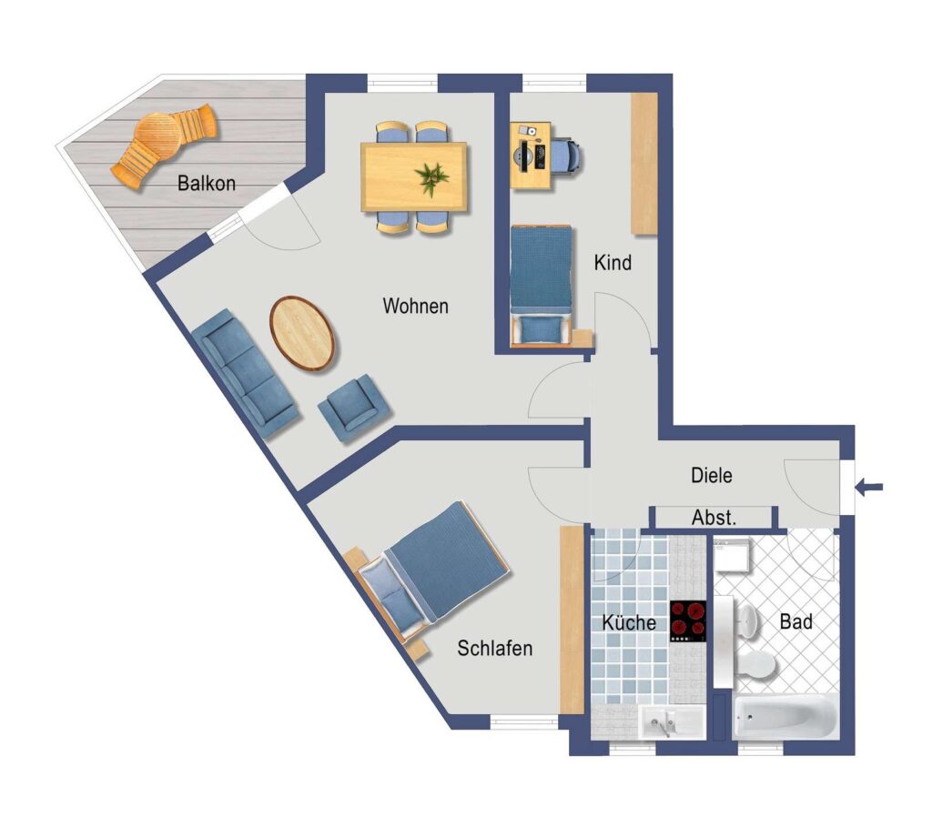 Ein sonniger großer Balkon rundet die Wohnung ab.