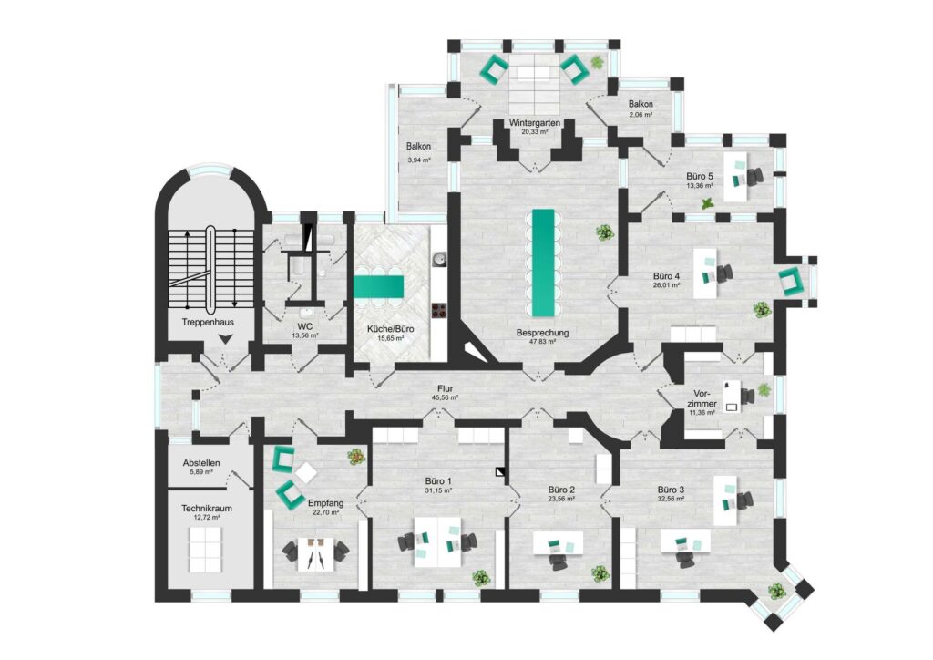 – Wohn-/Nutzfläche gesamt: ca. 1268 m²