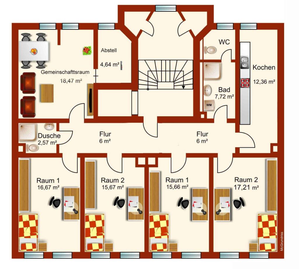Im Haus wohnen viele Wohngemeinschaften. Es ist ein ruhiges und sehr freundliches Miteinander.