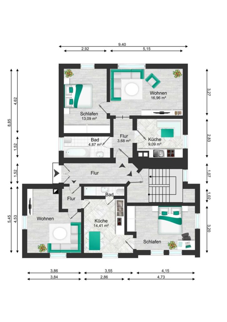 Zwei Wohneinheiten sind aktuell langzeitvermietet und erwirtschaften jährlich eine Nettokaltmiete von ca. 5.760 Euro.
