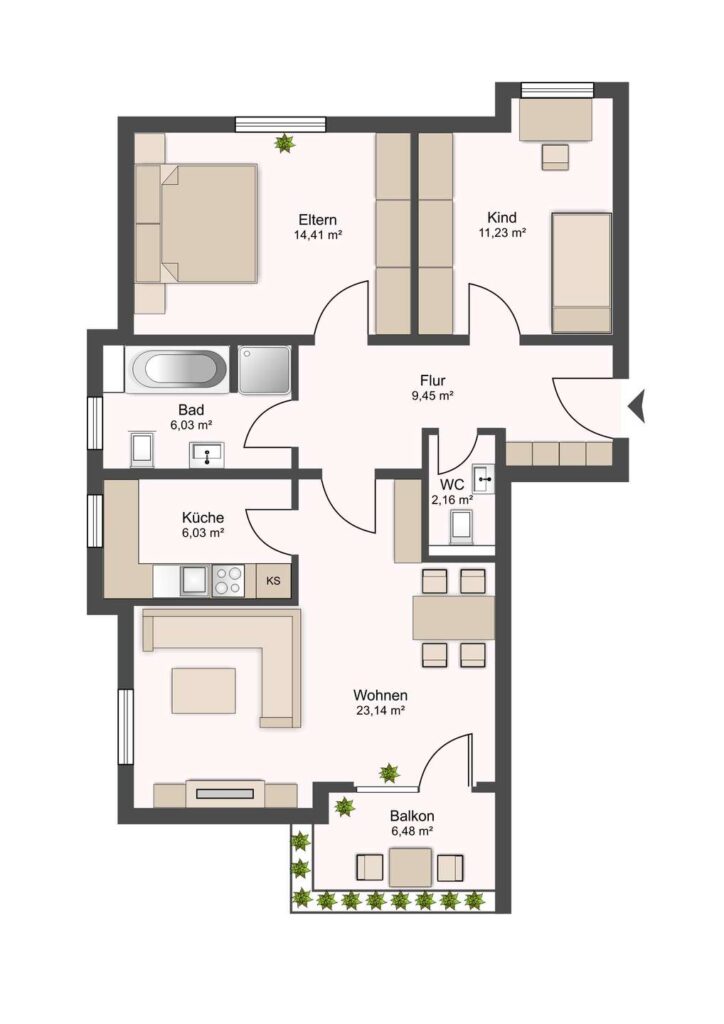 • Wohnfläche: 75,69 m²